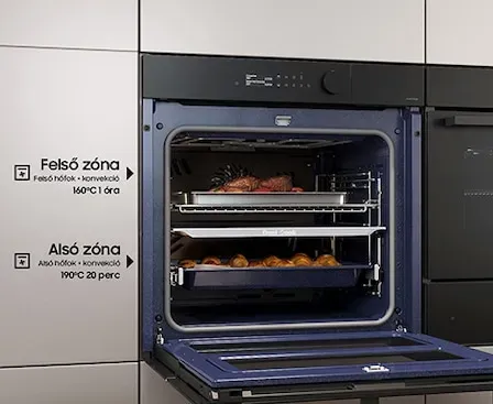 Az optimális eredmény érdekében válaszd ki, hogyan főzöd a különböző ételeket. A Dual Cook felső és alsó zónája egymástól függetlenül vagy együtt is működik. Használd a felső zónát a kisebb ételekhez, a két zónát egy időben, hogy különböző beállításokkal készíts különböző ételeket, és érj el ízletes eredményeket, vagy az egész sütőt a nagy ételekhez.