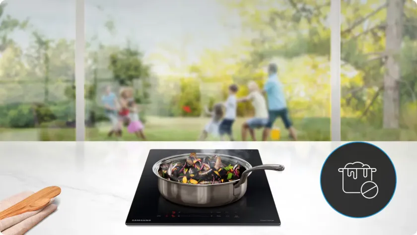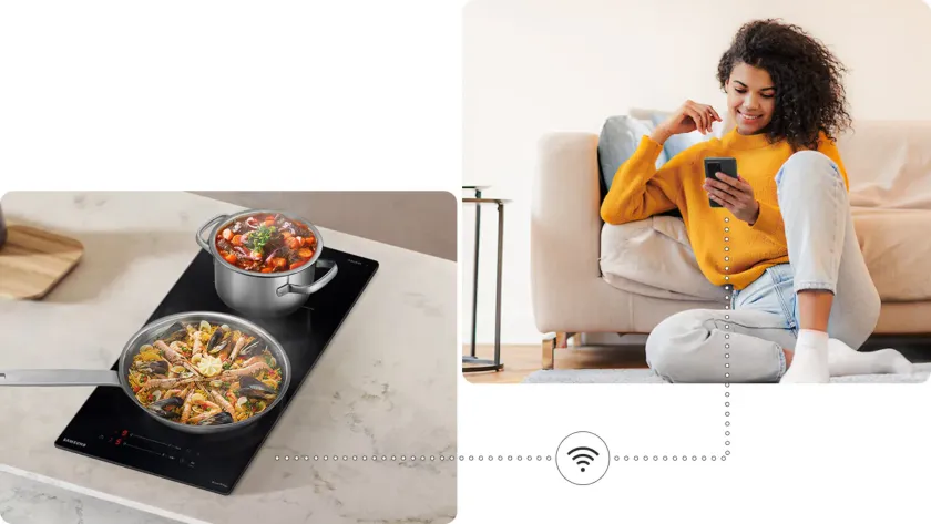 * Csak felügyelet áll rendelkezésre. A főzőlap okostelefonon keresztül nem kapcsolható be/ki.**Android és iOS eszközökön elérhető. Wi-Fi kapcsolat és Samsung Account szükséges.