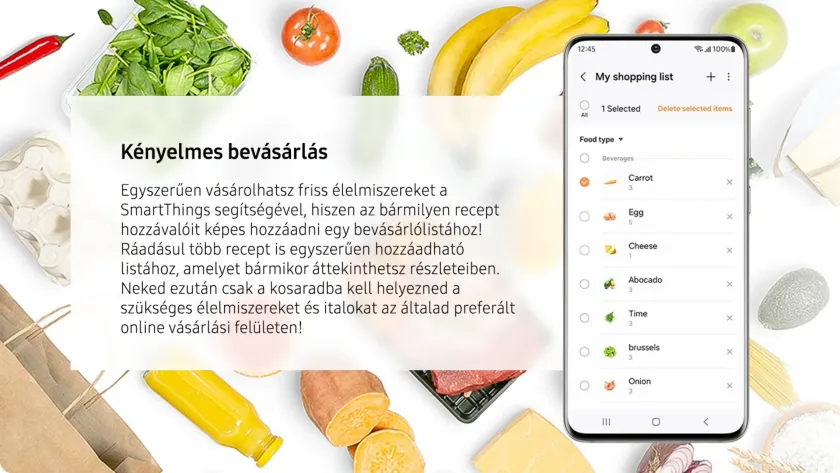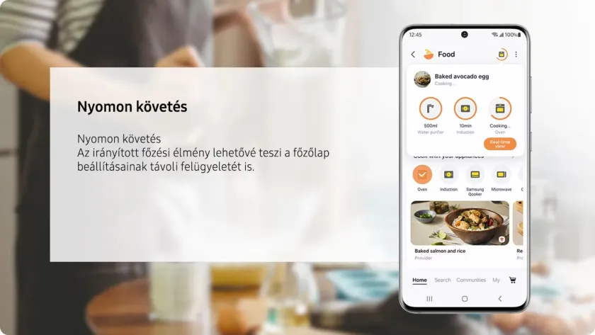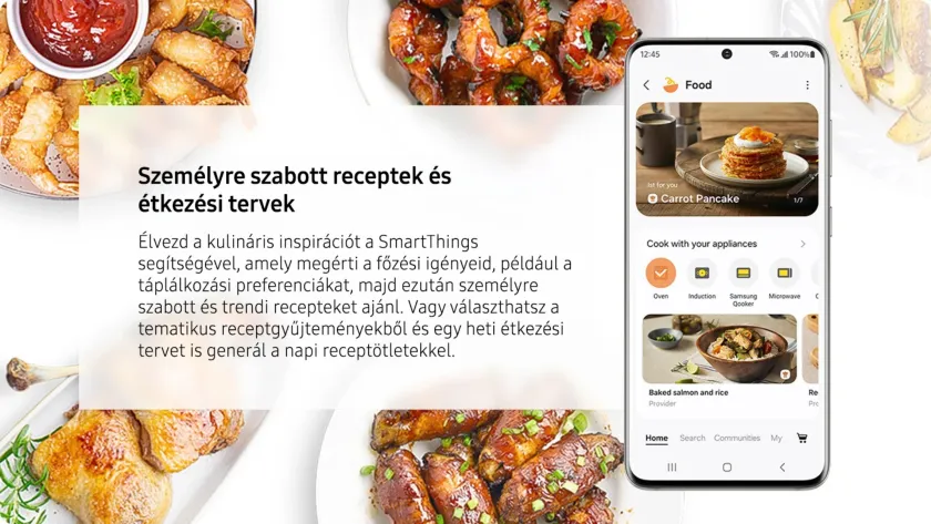 Tedd örömtelibbé a konyhai élményt! A SmartThings Food* segítségével időt takarítasz meg és minimalizálhatod a főzéssel járó terheket. Az igényeid megismerésével személyre szabott recepteket** ajánl, és heti étkezési tervet készít. Mindemellett lehetővé teszi a főzőlap beállításainak felügyeletét***, és a könnyed élelmiszervásárlást**** is.