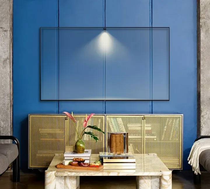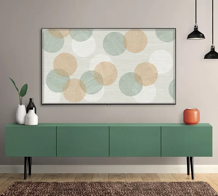 Bár szeretünk tévét nézni, néha mégis kikapcsoljuk. Különösen a mai nyitott terek mellett zavaró lehet egy nagy fekete doboz a falon. Az Ambient Mode-nak köszönhetően azonban egyetlen gombnyomással olyan motívumot jeleníthetsz meg a tévé, amely elegánsan beleolvad a háttérbe és a dekorációba.