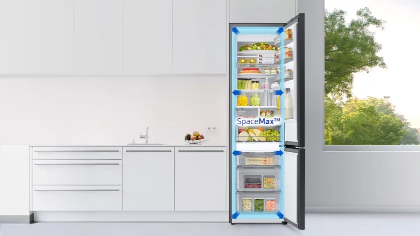 Tárolj több élelmiszert egy extra nagy, 341 literes* hűtőben, ami szabványos, 600 mm-es mélységű kialakításával zökkenőmentesen illeszkedik a szekrényeidhez. A SpaceMax™ technológia nagy hatásfokú szigetelése lehetővé teszi a sokkal vékonyabb hűtőfalakat, így nagyobb belső tárhely ellenére sem lóg ki a munkalap síkjából.