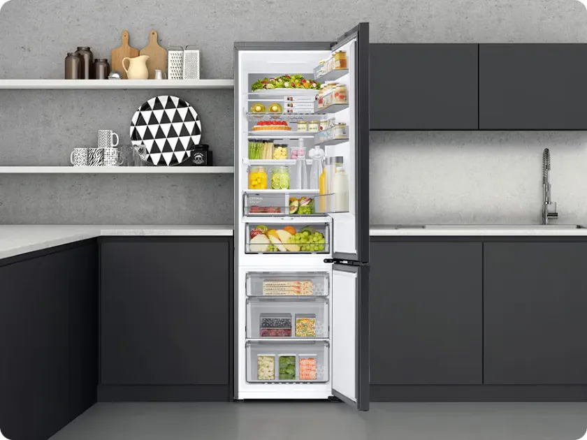 Tárolj több ételt a 390 literes* hűtőben, ami a sztenderd 600mm-es mélységnek megfelel, így tökéletesen fog illeszkedni a bútoraid közé. A SpaceMax™ technológia magas hatékonyságú szigetelésének köszönhetően a falai sokkal vékonyabbak. Így nagyobb térfogat mellett sem lóg ki a munkalap síkjából.