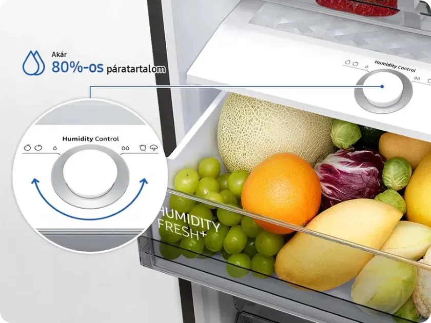 Tartsd meg hosszabb ideig az eredeti textúráját, zamatát és ízét a romlandó ételeknek. A Humidity Fresh+ fiókban egyszerűen beállíthatod a páratartalmat egy gomb elforgatásával. Tökéletes környezetet biztosít a különböző gyümölcsök és zöldségek tárolására, hogy ropogósak, frissek és lédúsak maradjanak.