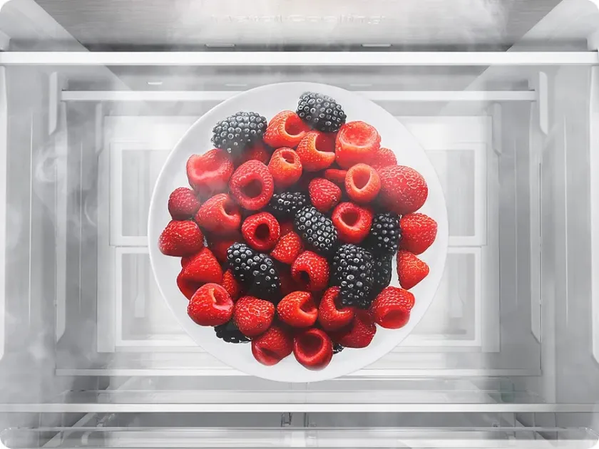 Fontos, hogy az ételeid megfelelően legyenek hűtve - bárhova is teszed őket a hűtődben. A Körkörös hűtés minden rekeszt egyenletesen hűt, saroktól sarokig. Folyamatosan figyeli a belső hőmérsékletet, és a stratégiai pontokon elhelyezett nyílásokon keresztül keringeti a levegőt. Így az élelmiszer az optimális hőmérsékleten marad, és hosszabb ideig friss marad.