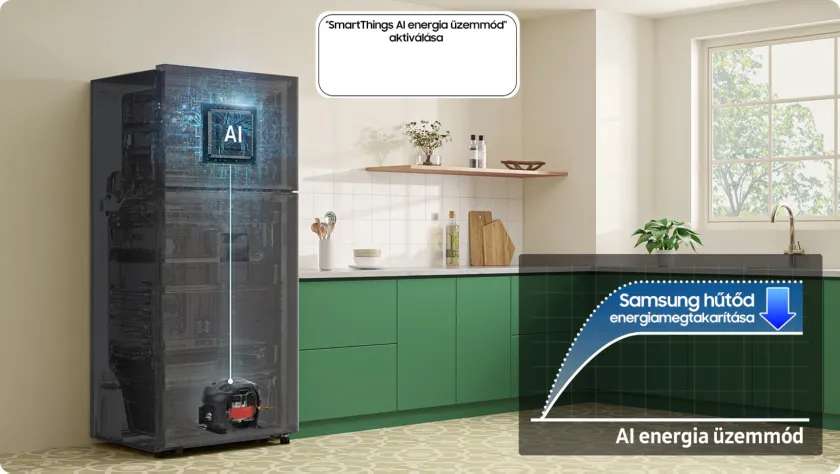 Csökkentsd energiafelhasználásod az energiahatékony üzemmóddal**! Ha a becsült villanyszámlád meghaladja az előre beállított célértéket, akkor a hűtő lehetőséget biztosít az energiamegtakarításra***, ráadásul optimalizálja a kompresszor fordulatszámát is és a leolvasztási ciklusokat a használati szokásaid alapján.