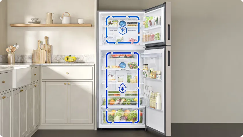 Biztosítja, hogy az élelmiszerek hosszabb ideig őrizzék meg nedvességüket és így maradjanak frissebbek*. A Twin Cooling Plus™ rendszer független párologtatók és ventilátorok segítségével optimalizálja a hőmérsékletet és a páratartalmat a hűtőszekrényben és a fagyasztóban. A legjobb körülmények között őrzi meg az élelmiszereket, és a szagok keveredésének megakadályozásával megóvja azok természetes ízét és aromáját.