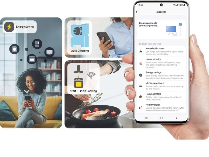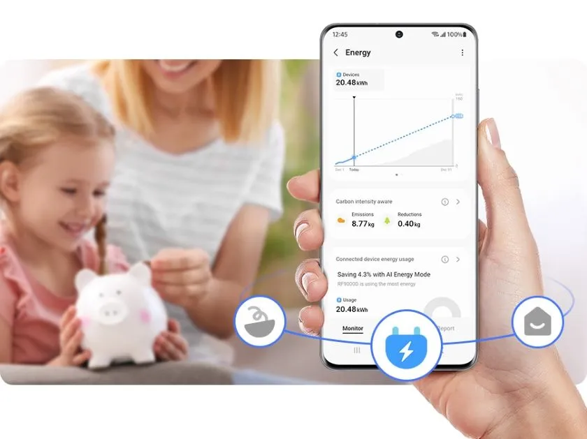 Kövesd nyomon energiafelhasználásod, a szén-dioxid kibocsájtás csökkentése és energiaköltségeid megtakarítása érdekében! A SmartThings Energia* menüje energiahatékonysági tippeket ad, emellett valós időben figyeli a készülékek energiafogyasztását**, és összehasonlítja azt az előző hónappal. Sőt figyelmeztet is téged, ha esetleg túllépd a havi terveidet.