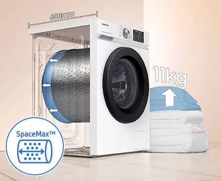Moss nagyobb adagokat a hatalmas 11 kg-os kapacitással rendelkező 600 mm-es sztenderd méretben, egyszerű és lapos BESPOKE kivitelben. Tökéletesen illeszkedik a belső térhez. A SpaceMax™ technológia rendkívül hatékony belső kialakításával, a nagyobb dobteret a külső méretek növelése nélkül használhatod.