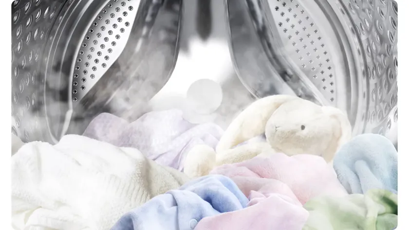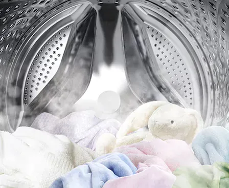 Ápold ruháidat mélyreható és higiénikus gőzöléssel! A higiénikus gőz a dob alsó részéből gőzt enged ki, így eltávolítja a beivódott szennyeződéseket és a baktériumok 99,9%-át*, és inaktiválja a háziporatkákból származó allergéneket**. A higiénikus gőz ciklus csökkenti a házi poratkának, a macskaszőrnek, a kutyaszőrnek, a fű pollenjének és a gombáknak való kitettséget***.