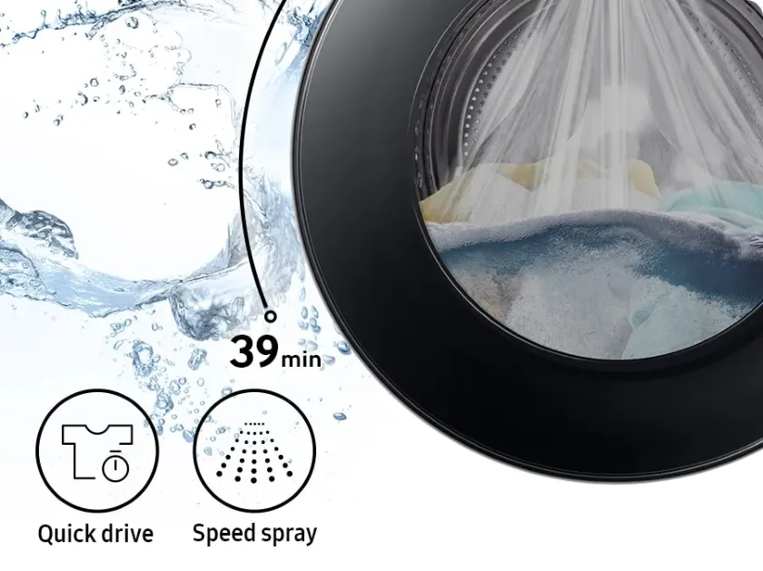 Rövidítsd le mosásra szánt idődet és tisztítsd ki ruháid alaposan! A Szupergyors funkció mosási beállításnak köszönhetően moss 39 perc alatt.* Míg az Ecobubble™ biztosítja az alapos tisztítást, az öblítési idő csökken a Speed Spray segítségével és felgyorsítja a centrifugálásra szánt időt.