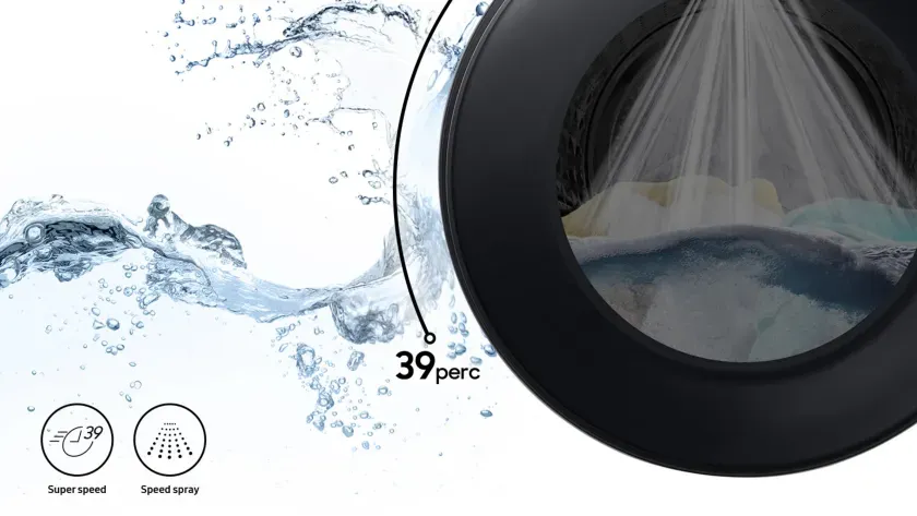Csökkentsd a mosás idejét és legyenek a ruháid teljesen tiszták! Használd a Szuper gyors funkciót és moss 39 perc alatt!* Az Eco Bubble™ technológia biztosítja az erőteljes tisztítást, míg a Gyors Vízsugár funkció csökkenti az öblítés idejét. És növeli a a centrifuga sebességét, így gyorsabban száradnak a ruháid.