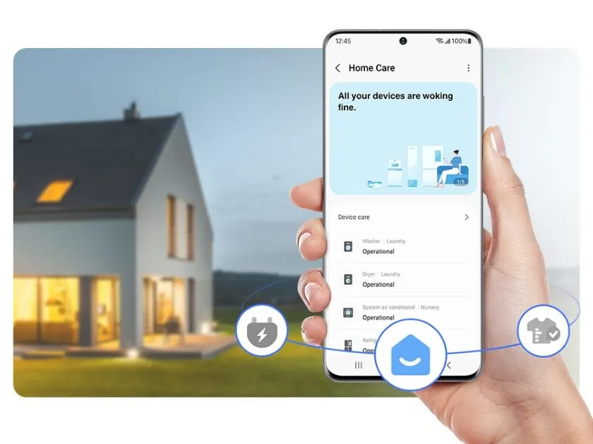 Gondoskodj mosógépedről vagy szárítógépedről sokkal könnyebben! A SmartThings Home Care* értesít, ha az alkatrészek cseréjére van szükség, és segít a felmerülő problémák elhárításában. Emellett azt is megmutatja, hogyan frissítheted a szolgáltatásaid és eszközeid szoftverét**. Ráadásul hasznos tippeket ad a készüléked használatához, valamint a használati útmutatót is megtalálhatod benne.