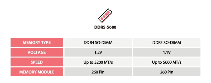A DH770 kétcsatornás DDR5-5600 memóriát támogat, amely nagy sávszélességével és többfeladatos képességeivel kiemelkedő teljesítményt és hatékonyságot biztosít AIoT számítási alkalmazásokhoz.