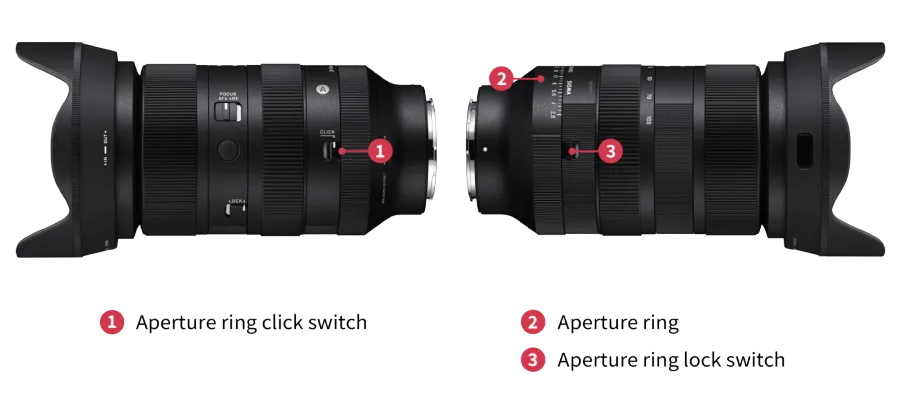 Az expozíció gyors megváltoztatásához vagy a klasszikus fotózási módra minél jobban hasonlító működés érdekében az objektívet dedikált rekeszállító gyűrűvel is felszerelték, így a rekeszérték nemcsak a fényképezőgépen, hanem az objektíven is változtatható. A rekeszállító gyűrű kattogáskapcsoló a filmkészítők számára fontos extra, a rekeszállító gyűrű rögzítőkapcsoló segítségével pedig megelőzhető a fókusz véletlen eltolódása is.
