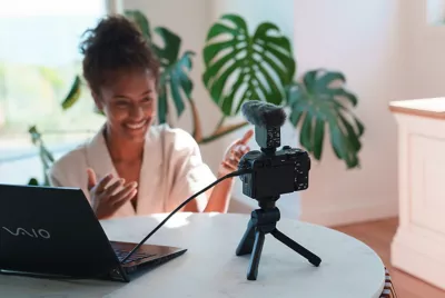 Csatlakoztasd az α6700 készüléket egy személyes számítógéphez vagy okostelefonhoz USB-n keresztül, hogy 4K-s (2160p) webkamerává váljon továbbfejlesztett AF-funkciókkal, így az online értekezleteket és élő streaminget még gördülékenyebbé teheted.