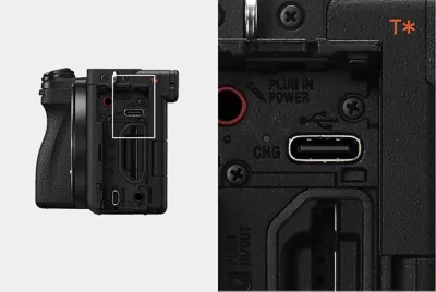 A gyors, fényképezőgépen belüli akkumulátortöltés érdekében támogatott az USB PD, ami a korábbi típusokhoz képest 3–4-szer nagyobb töltést biztosít. A kiterjesztett felvételi idő érdekében a fényképezőgép USB Type-C® portjához csatlakoztatni lehet egy USB-töltőt vagy egy mobilakkut, amely támogatja a USB PD szabványt, így bőséges áramellátás mellett hosszabb felvételeket is készíthetsz.