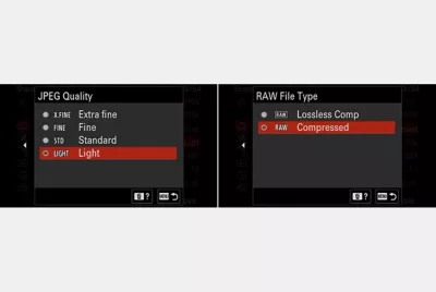 A tömörített RAW-felvétel mellett az α6700 támogatja a veszteségmentes tömörített RAW-felvételt is, ezáltal nagy sebességű tömörítés érhető el a kép minőségromlása nélkül, amely több kiváló minőségű kép elkészítését teszi lehetővé folyamatos sorozatfelvételekben. A JPEG- és HEIF-képekhez új, kevesebb adatot generáló Light képminőségi opciót biztosítunk.