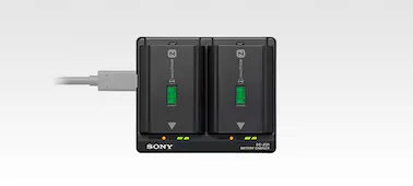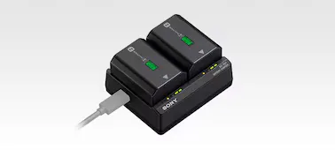 Az akkumulátortöltő gyorsan, egyszerre fel tud tölteni két NP-FZ100 akkumulátort, ha USB PD-kompatibilis tápegységhez van csatlakoztatva.