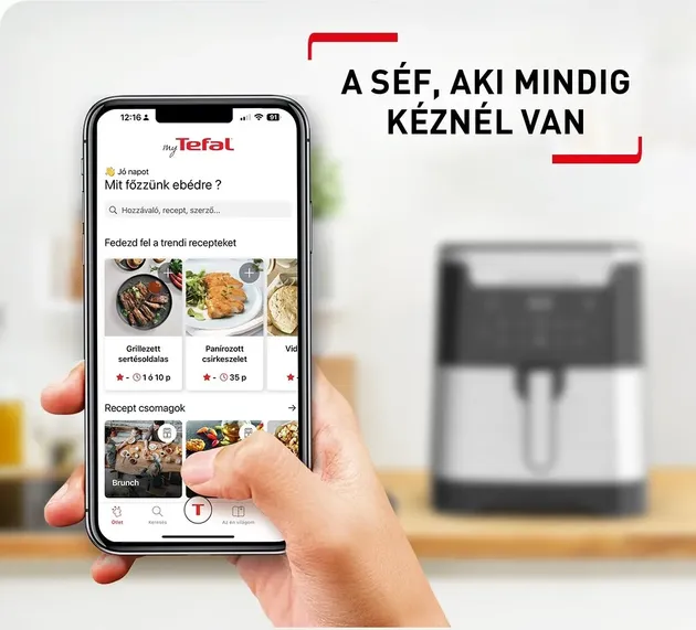 Szeretné maximálisan kihasználni termékünk minden innovatív funkcióját Töltse le My Tefal mobilalkalmazást, és nyissa meg a lehetőségek új világának kapuját. A My Tefal mobilalkalmazás Android és Apple iOS rendszert futtató eszközökre érhető el, és olyan funkciókkal van felszerelve, amelyek megkönnyítik a receptek keresését, az étkezések megtervezését, a bevásárlólisták összeállítását és még sok mást. És ami a legjobb: az alkalmazás ingyenesen letölthető és használható!