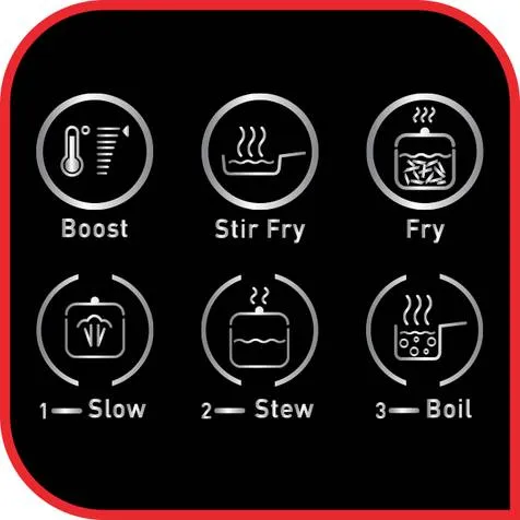 Élvezze a gyors és egyszerű főzést a hat különböző előre beállított programnak (alacsony hőmérséklet, lassú főzés, főzés, gyors főzés, pirítás és sütés) és a kézi vezérlésnek köszönhetően, a könnyen kezelhető főzőlapon, amely minden főzési igényét kielégíti.