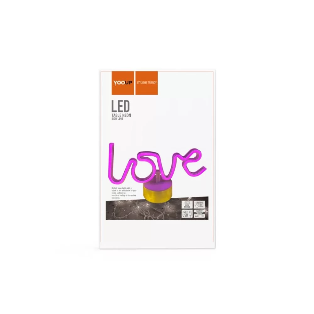 A "Love" felirat széles, de alacsonyabb mérete (27.5x8.5x14 cm) miatt ideális a polcok, ablakpárkányok és szélesebb asztali felületek díszítésére. A felirat formája és a fény intimitása azonnal hívogató és romantikus hangulatot teremt. A YOOUP a hagyományos gázneon helyett energiatakarékos és biztonságos LED technológiát alkalmaz, amely hosszú élettartamot és minimális hőtermelést garantál, miközben a fényhatás a klasszikus neon vizuális erejét adja. A YOOUP Love neonnal a romantika, a kényelem és a divat találkozik egyetlen, lenyűgöző dekorációs elemben.