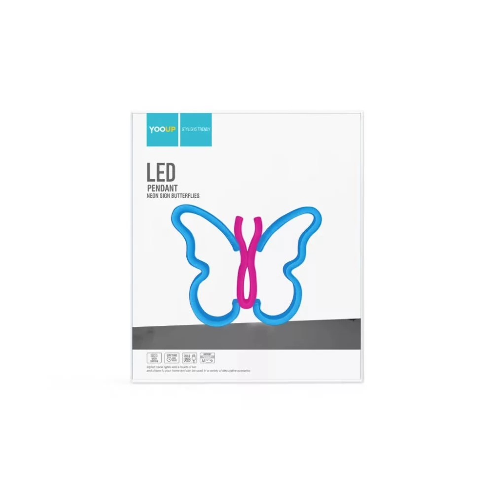 A YOOUP Butterfly LED fali neon dekoráció a modern esztétika, a légies motívumok és a felhasználóbarát technológiai megoldások kifinomult kombinációja. Hűen ahhoz az elvhez, hogy a dekorációs elemeknek inspirálónak és rendkívül funkcionálisnak kell lenniük, a YOOUP márka megalkotta ezt a pillangós motívumot, amely friss, elegáns és egyedi hangulatot teremt a falon. Ez a neon kiváló eszköz a karakteres, fiatalos és optimista hangulat megteremtéséhez a térben.