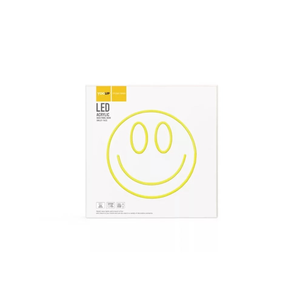 A smiley motívum impozáns, négyzetes mérete (32x1.6x32 cm) és a mindössze 1.6 cm-es mélység miatt ideális fali használatra, elegánsan simul a felülethez. A tartós plexi hátlap nemcsak stabil tartást ad a neoncsöveknek, de letisztult, modern megjelenést is kölcsönöz, ami professzionális hatást kelt. A YOOUP a hagyományos gázneon helyett energiatakarékos és biztonságos LED technológiát alkalmaz, amely hosszú élettartamot és minimális hőtermelést garantál, miközben a fényhatás a klasszikus, élénk neon vizuális erejét adja. A YOOUP Smile neonnal a pozitivitás, a minőség és a technikai kényelem találkozik egyetlen, lenyűgöző dekorációs elemben, amely a faladat a fiatalos, optimista stílusod kifejezőjévé változtatja.