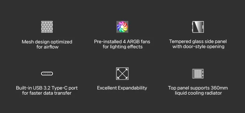 - A stílusos elülső rácsos kialakítás RGB ventilátorokkal biztosítja a kiemelkedő légáramlási teljesítményt.