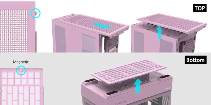 Az elülső és oldalsó panelek egyszerűen és teljesen eltávolíthatók, így kényelmesen hozzáférhet a PC-komponensekhez