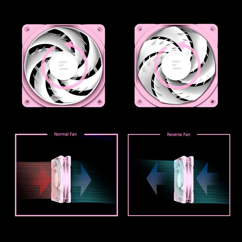 A 3 db előre telepített 120mm-es ZM-AF120 címezhető RGB ventilátor teljes testre szabhatóságot biztosít egy 3 tűs csatlakozáson keresztül.