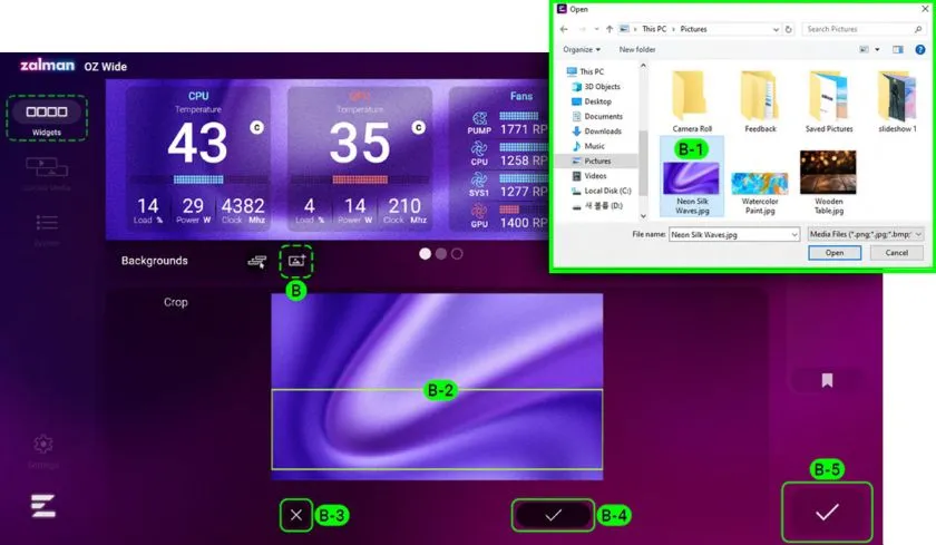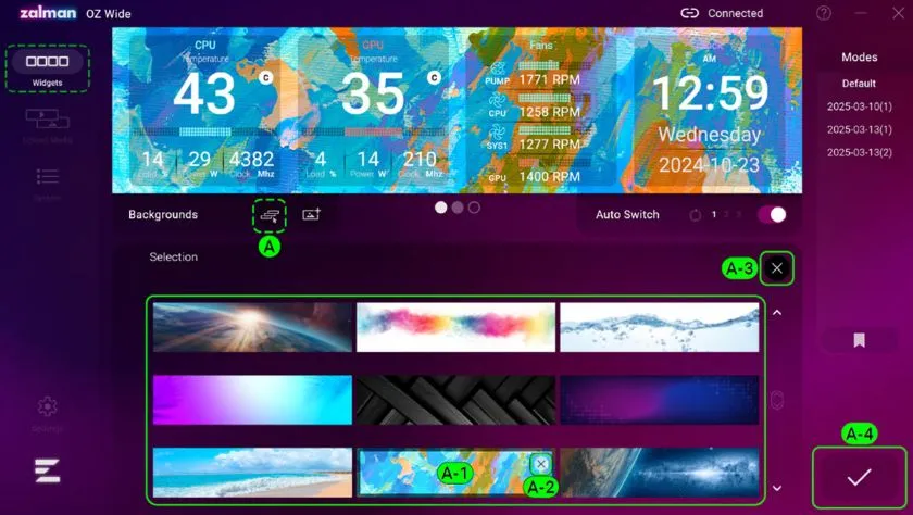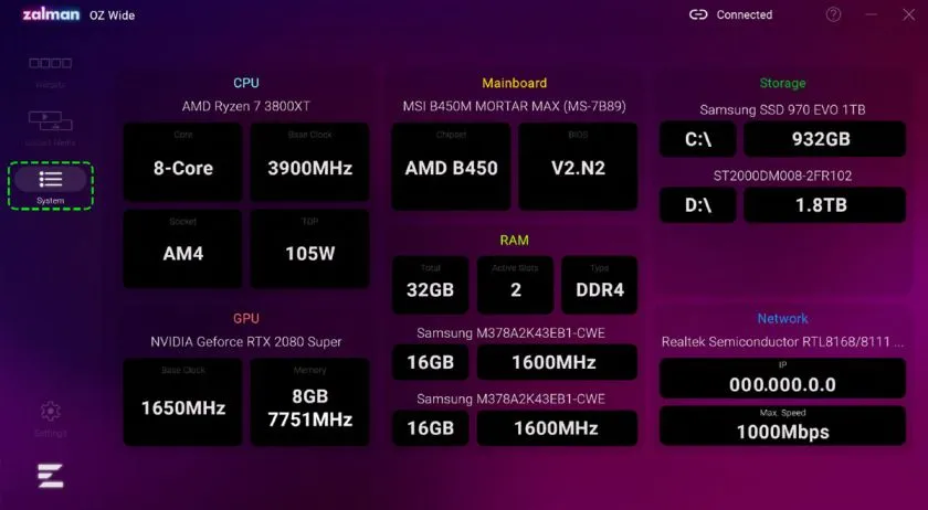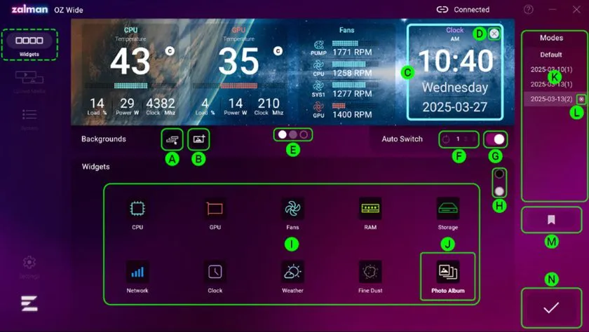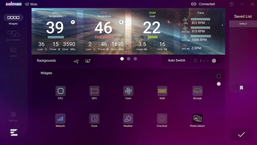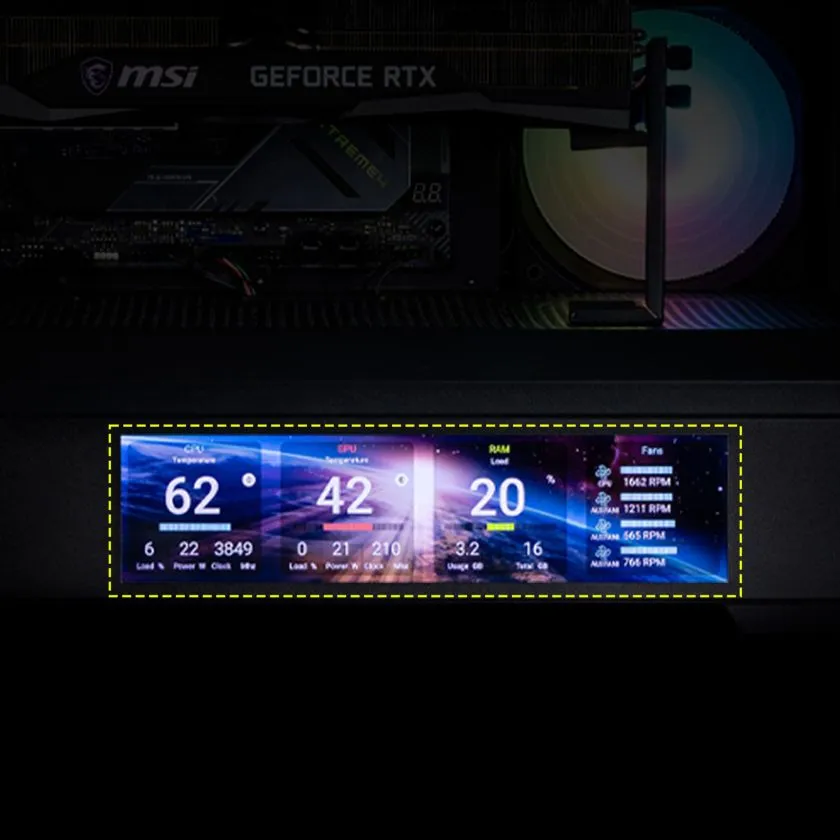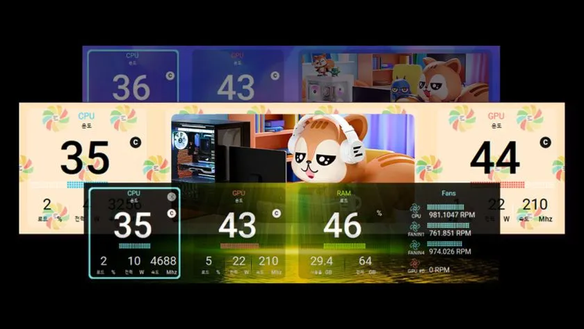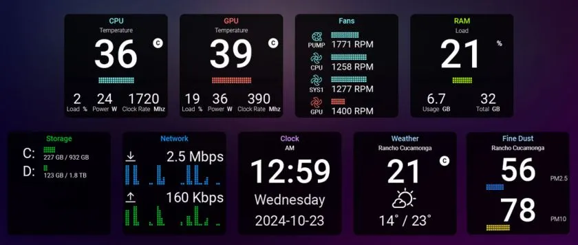Különböző funkciókat biztosít, például CPU, GPU, RAM, tárhely, ventilátorsebesség, időjárás, óra, porszint és digitális képkeret.