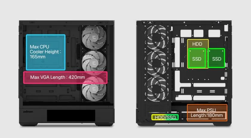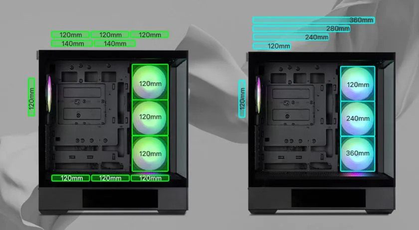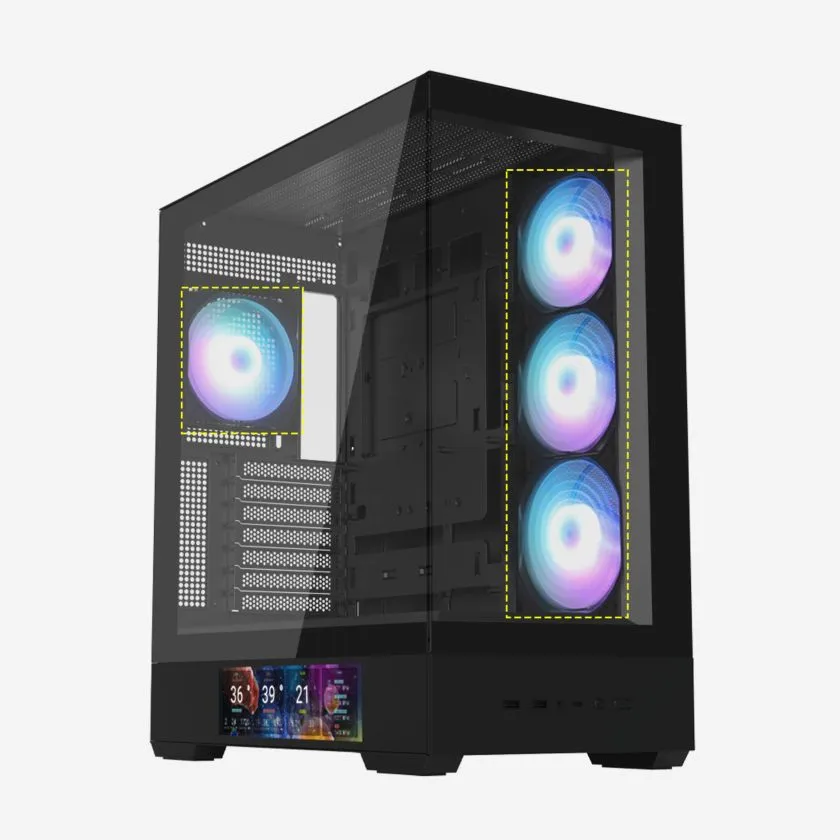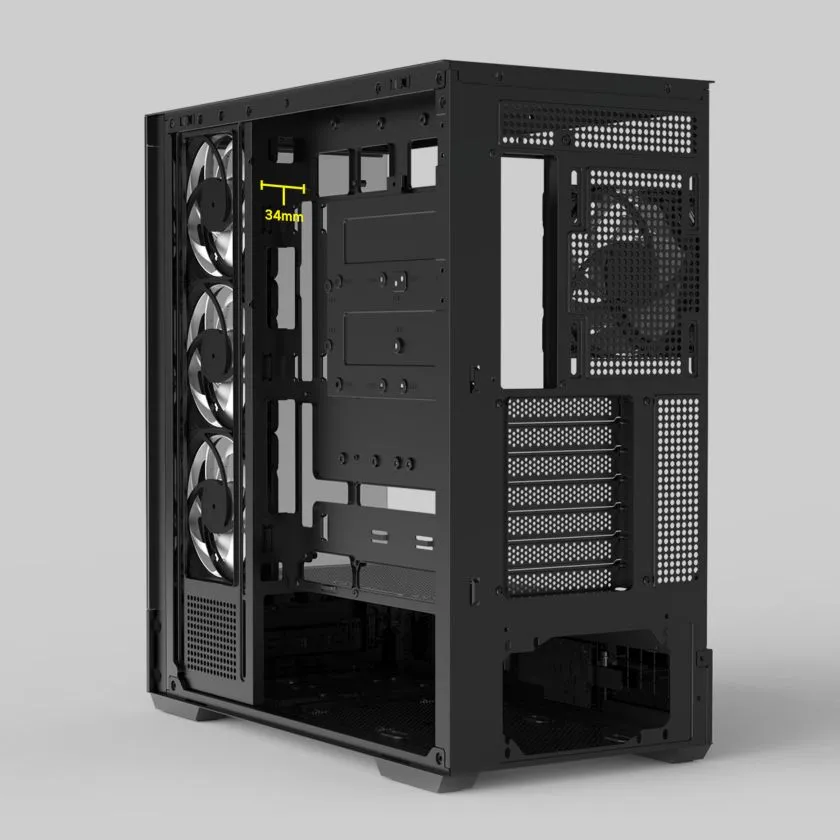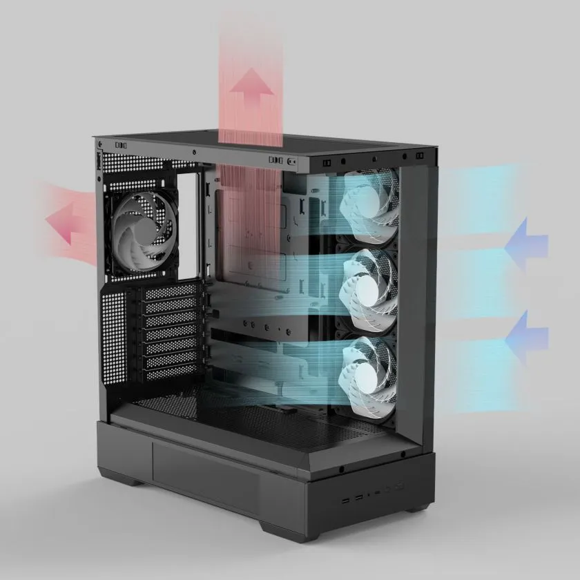 A legjobb hűtési megoldást biztosítja az oldalsó szívónyílás kialakítást optimalizált ventilátorelhelyezéssel kombinálva a kiváló belső légáramlás érdekében.