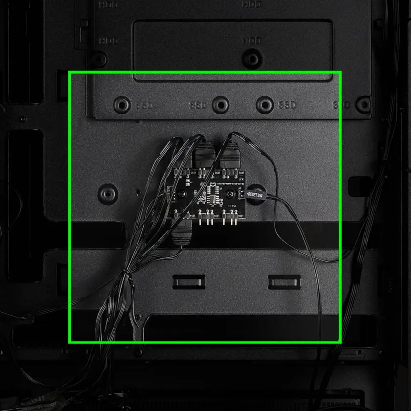 Tartalmaz egy videokártya-tartó konzolt a megereszkedés megakadályozására, amely állítható magassága révén a videokártya-méretek széles körét támogatja. A legjobb teljesítmény érdekében kérjük, a mellékelt EVA habbal használd.
