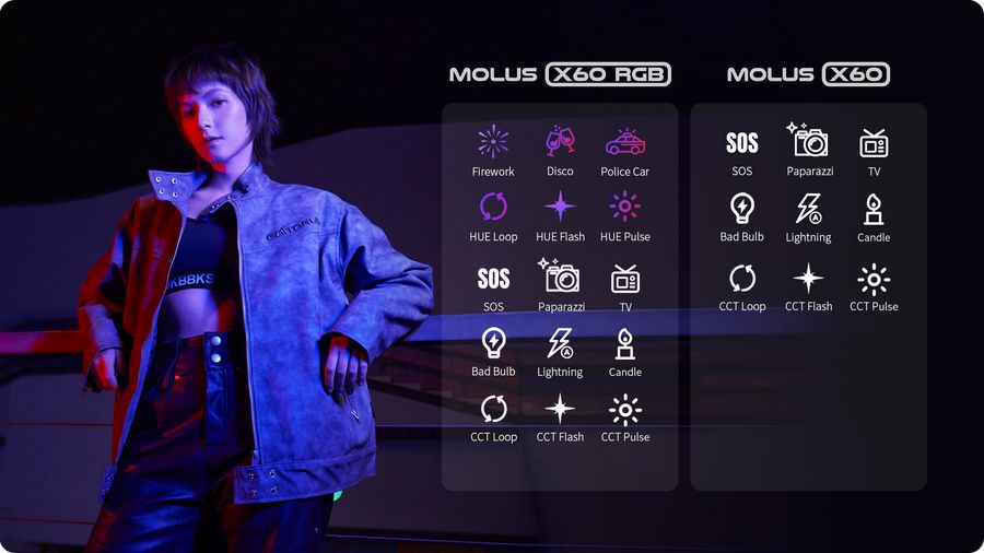 A ZHIYUN MOLUS X60 sorozat a legkisebb, 60 W-os színes COB filmes lámpa a piacon, könnyen elfér egy hátizsákban vagy válltáskában. Játékszerű mérete ellenére a lámpa professzionális minőséggel és textúrával büszkélkedhet.