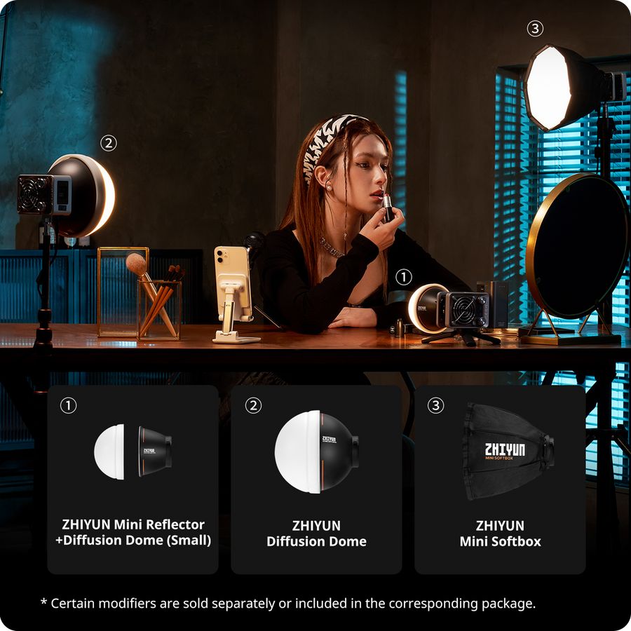 A ZHIYUN intuitív ZY Vega alkalmazása lehetővé teszi a ZHIYUN lámpák színhőmérsékletének és fényerejének gyors és vezeték nélküli beállítását. Olyan professzionális funkciókat is tartalmaz, mint a színfelismerés és az intelligens színillesztés a világítási beállításokhoz, amelyek megkönnyítik a tökéletes hangulat elérését.